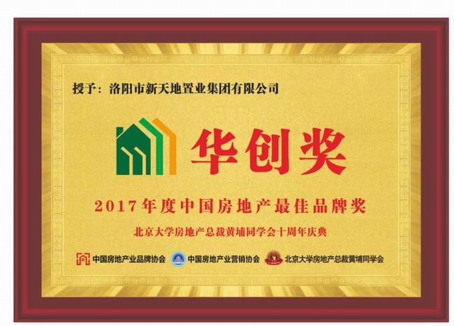 作為洛陽地產(chǎn)行業(yè)的領(lǐng)軍人物,新天地集團不負眾望,憑借雄厚的品牌實力和***產(chǎn)品的成功塑造,以及董事長張夢留的個人魅力,斬獲“華創(chuàng)獎?2017年度中國房地產(chǎn)***佳品牌獎”和“華創(chuàng)獎?2017年度中國房地產(chǎn)***企業(yè)家獎”雙桂冠。